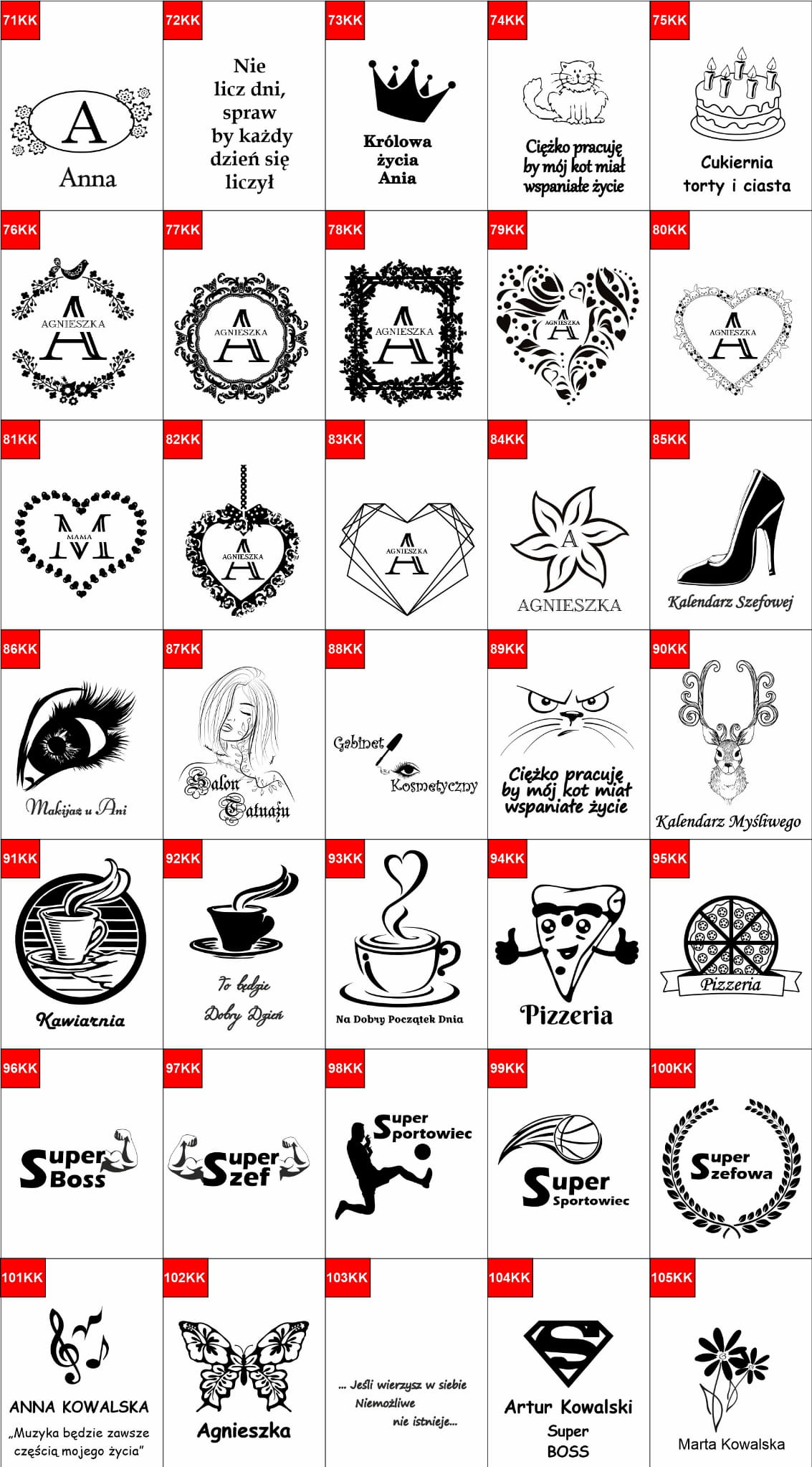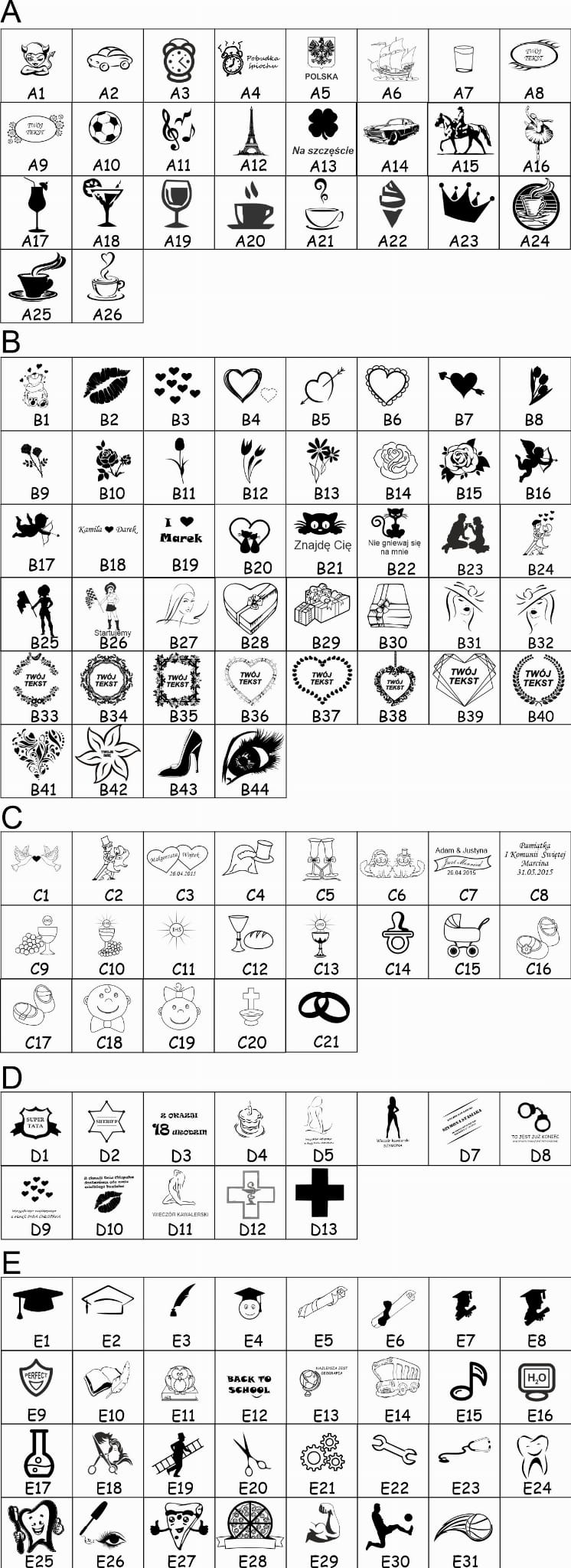 W galerii pokazane są grafik które można zastosować do graweru. Można skomponować własny projekt z naszych grafik i czcionek.