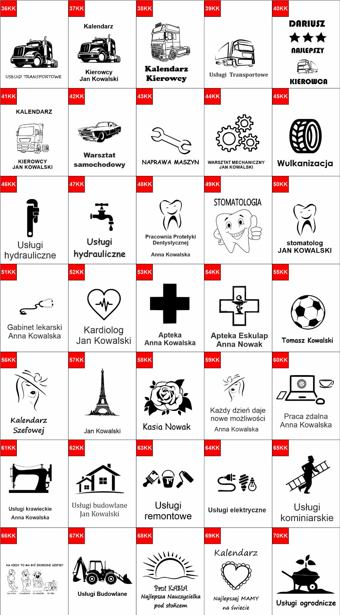 W galerii pokazane są grafik które można zastosować do graweru. Można skomponować własny projekt z naszych grafik i czcionek.
