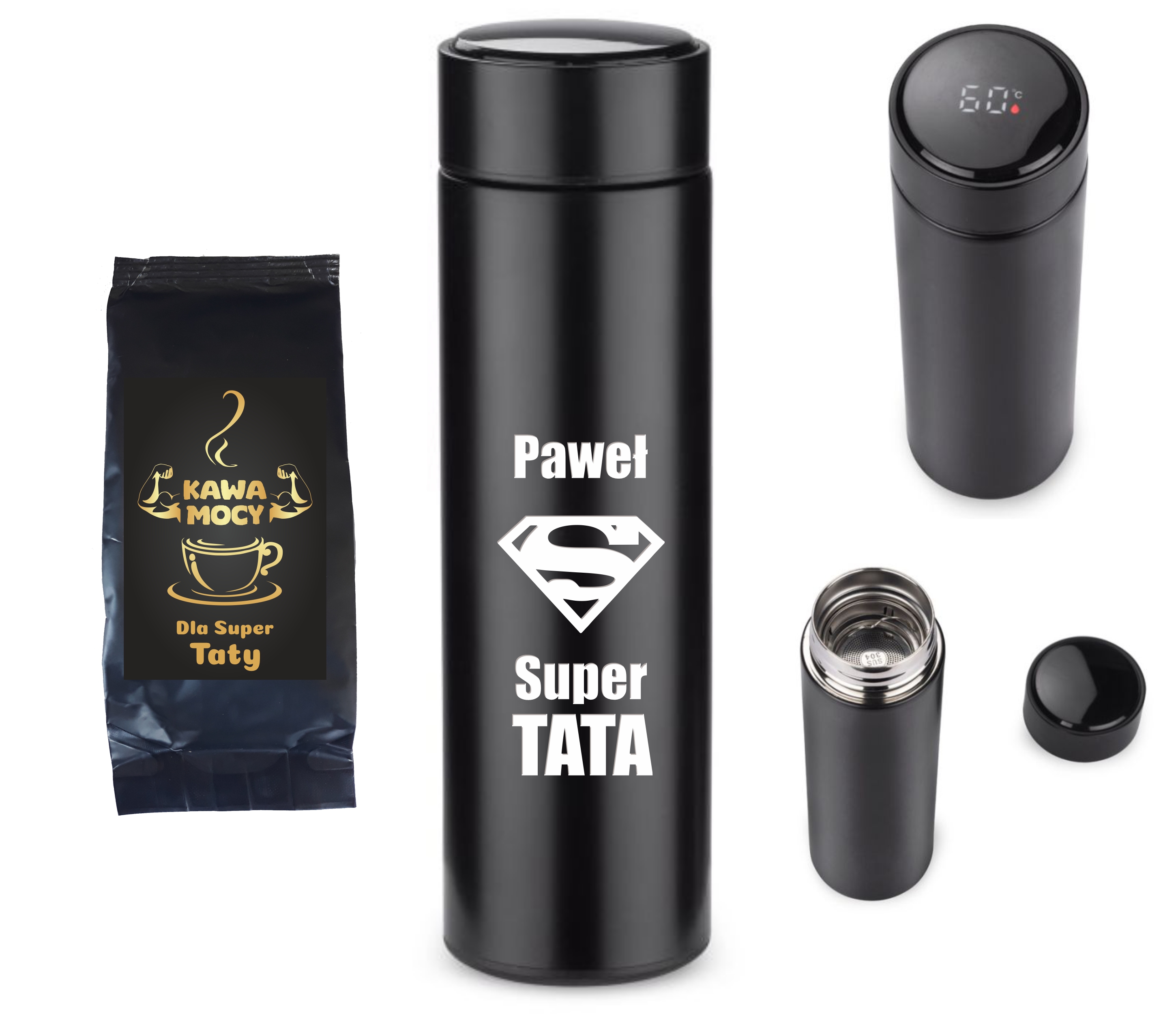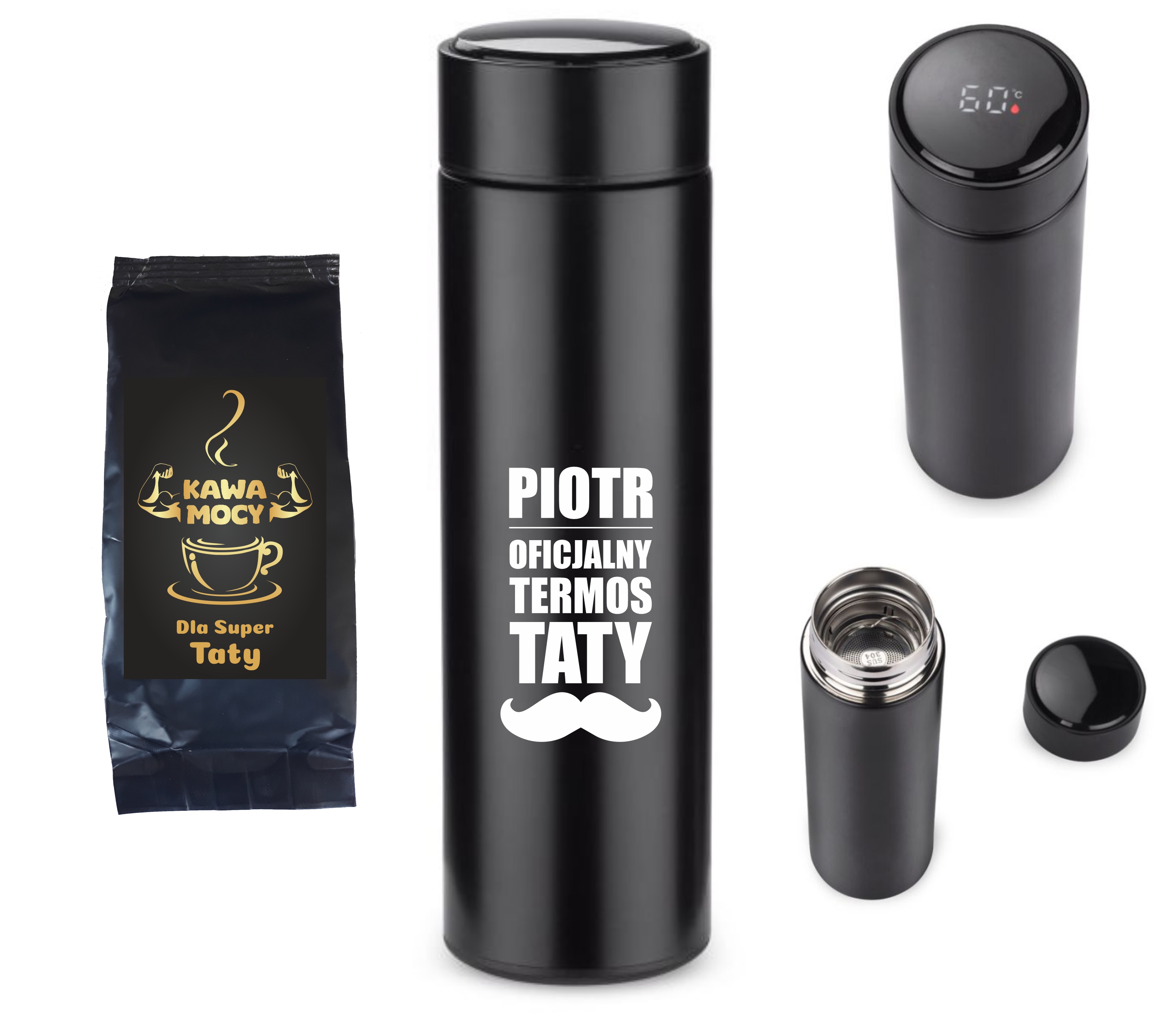 Butelka termiczna z termometrem LEDIKT 440 ml + kawa