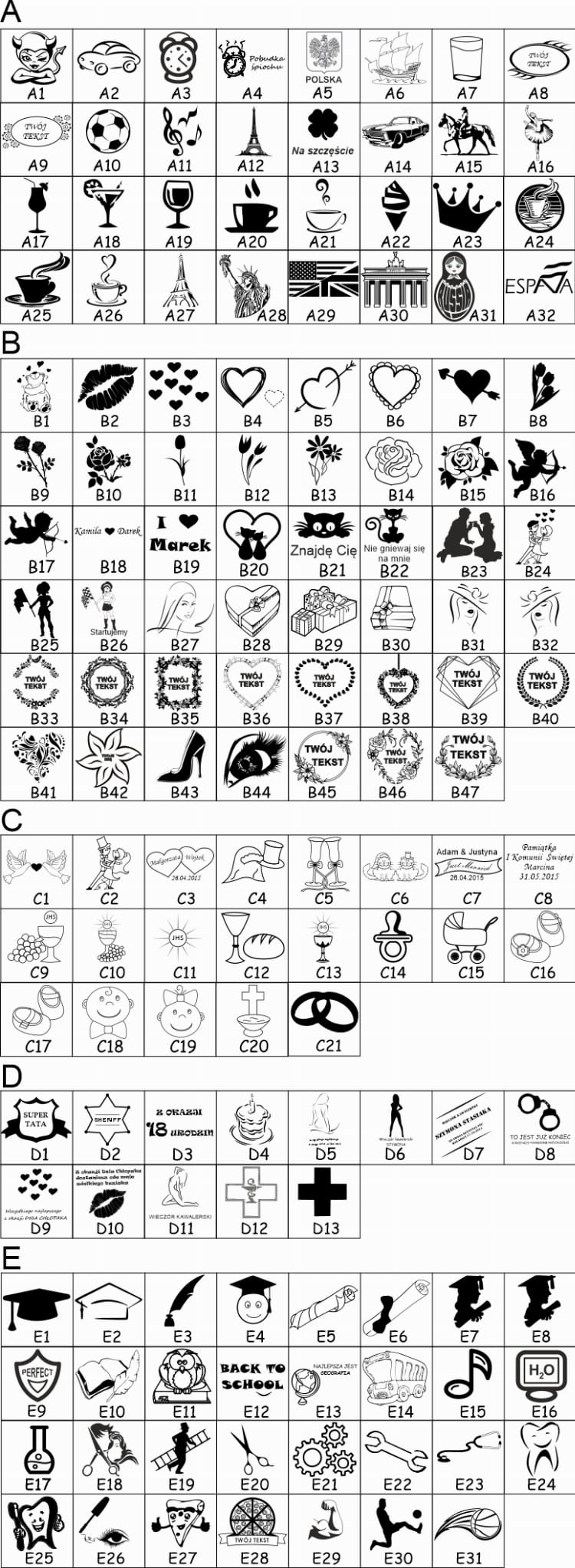 - WZÓR i tekst, lub tekst / grafika / (z podanych powyżej), lub logo do grawerowania