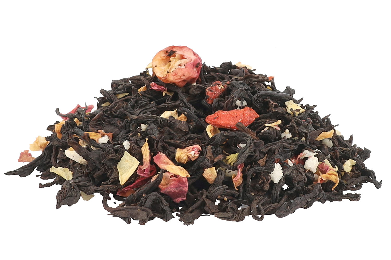HERBATA HIMALAJSKA 30g.HERBATA CZARNA zawiera : suszone owoce goji, wiórki kokosowe, suszoną skórkę pomarańczy, płatki róży, jaśminu, porzeczkę i żurawinę liofilizowaną |
